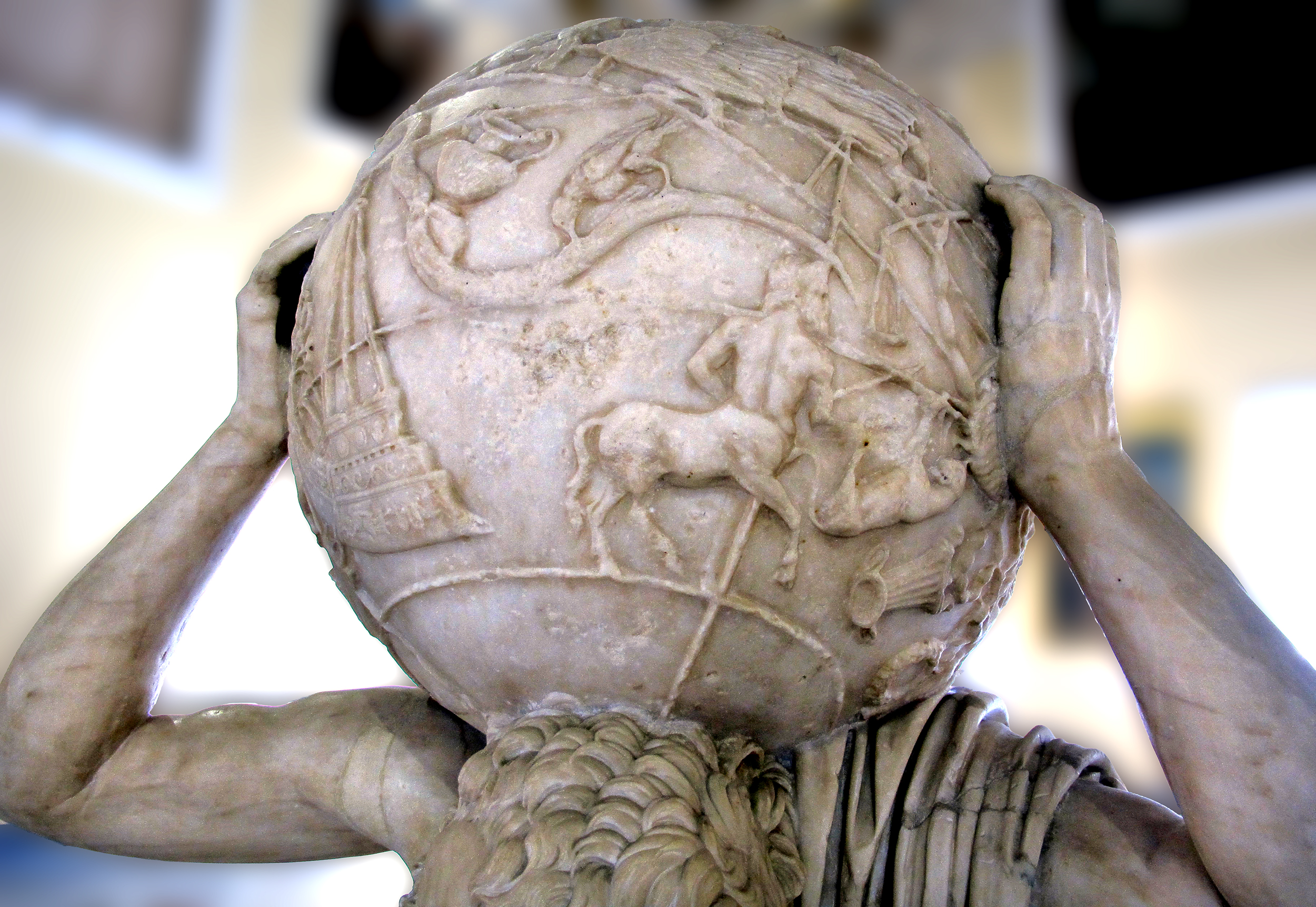 2. Il globo celeste dell’Atlante Farnese, forse la più antica raffigurazione delle costellazioni con espliciti riferimenti astronomici, probabilmente ispirato al catalogo di Ipparco.