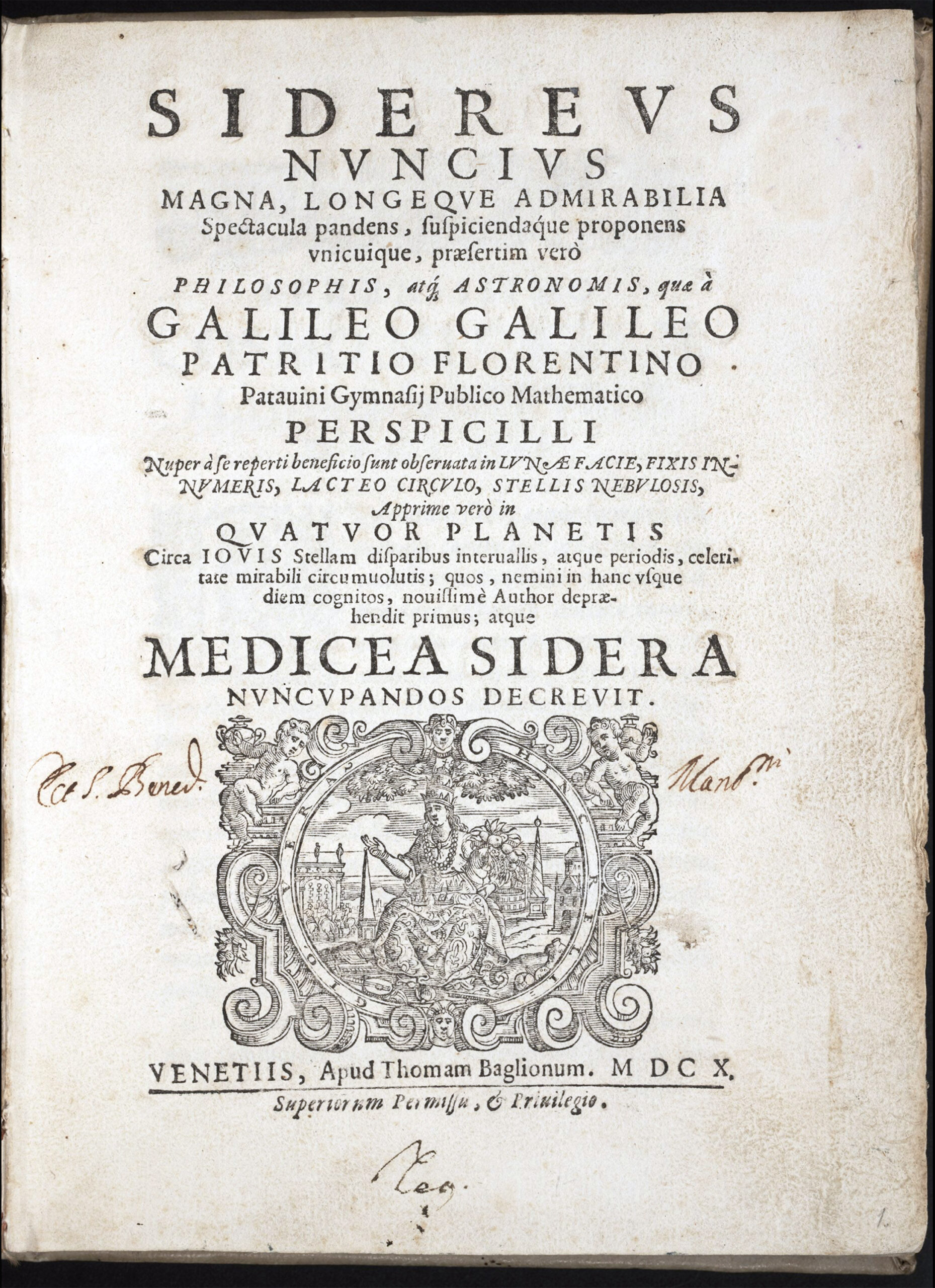 12. Galileo Galilei (1564-1642), Sidereus Nuncius, 1610: frontespizio.