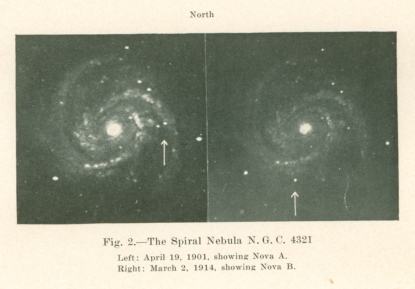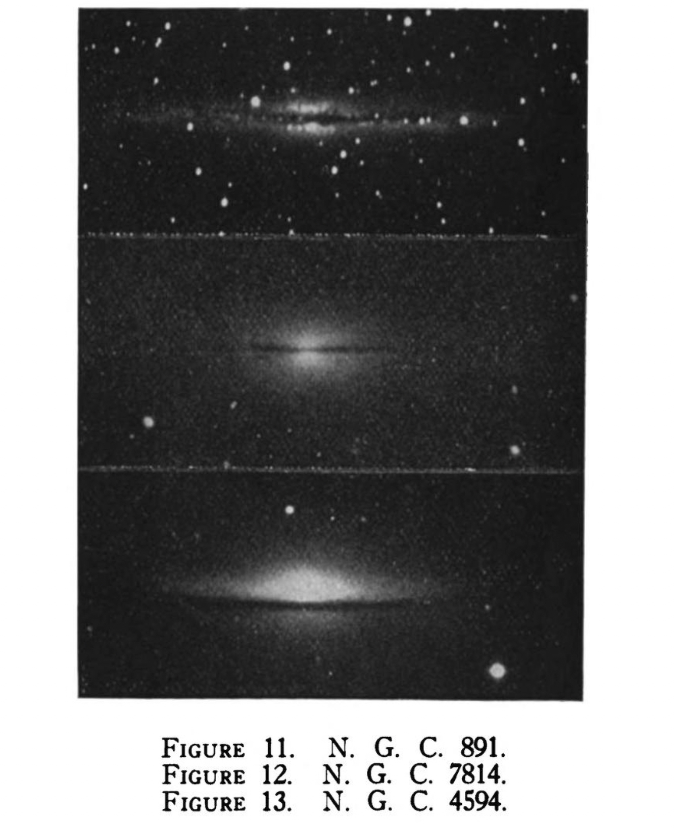 1. Il telescopio Merz da 190 millimetri del Laws Observatory.2. George Ritchey al rifrattore da 40 pollici (102 cm) dello Yerkes Observatory, circa 1900.3. Harlow Shapley e Martha Betz in giorno delle nozze, 15 aprile 1914.4. Henry Norris Russell.5. L’Halsted Observatory della Princeton University intorno al 1860.6. Il telescopi da 60 pollici (152 cm) viene trasportato a Mount Wilson, 1907.7. Distribuzione degli ammassi globulari sopra e sotto il piano galattico, principalmente verso Sagittarius (325° di longitudine galattica, scala esterna). Il Sole è all’origine del sistema di coordinate. Shapley 1918.8. La relazione periodo-luminosità per le Cefeidi calibrata ed utilizzata da Shapley, 1918.9. Harlow Shapley al celebre tavolo ottagonale rotante all’Harvard College Observatory, circa 1940.10. Heber Curtis all’oculare del riflettore “Crossley” da 91 cm del Lick Observatory.11. Il rifrattore da 91 cm del Lick Observatory.12. Evidenza di “materia assorbente” in alcune spirali viste di taglio. Curtis, 1917.