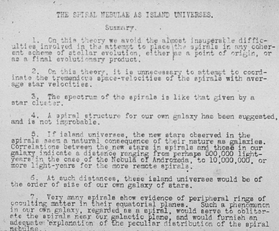 8. Uno dei lucidi proiettati da Heber Curtis nel corso del Grande Dibattito.