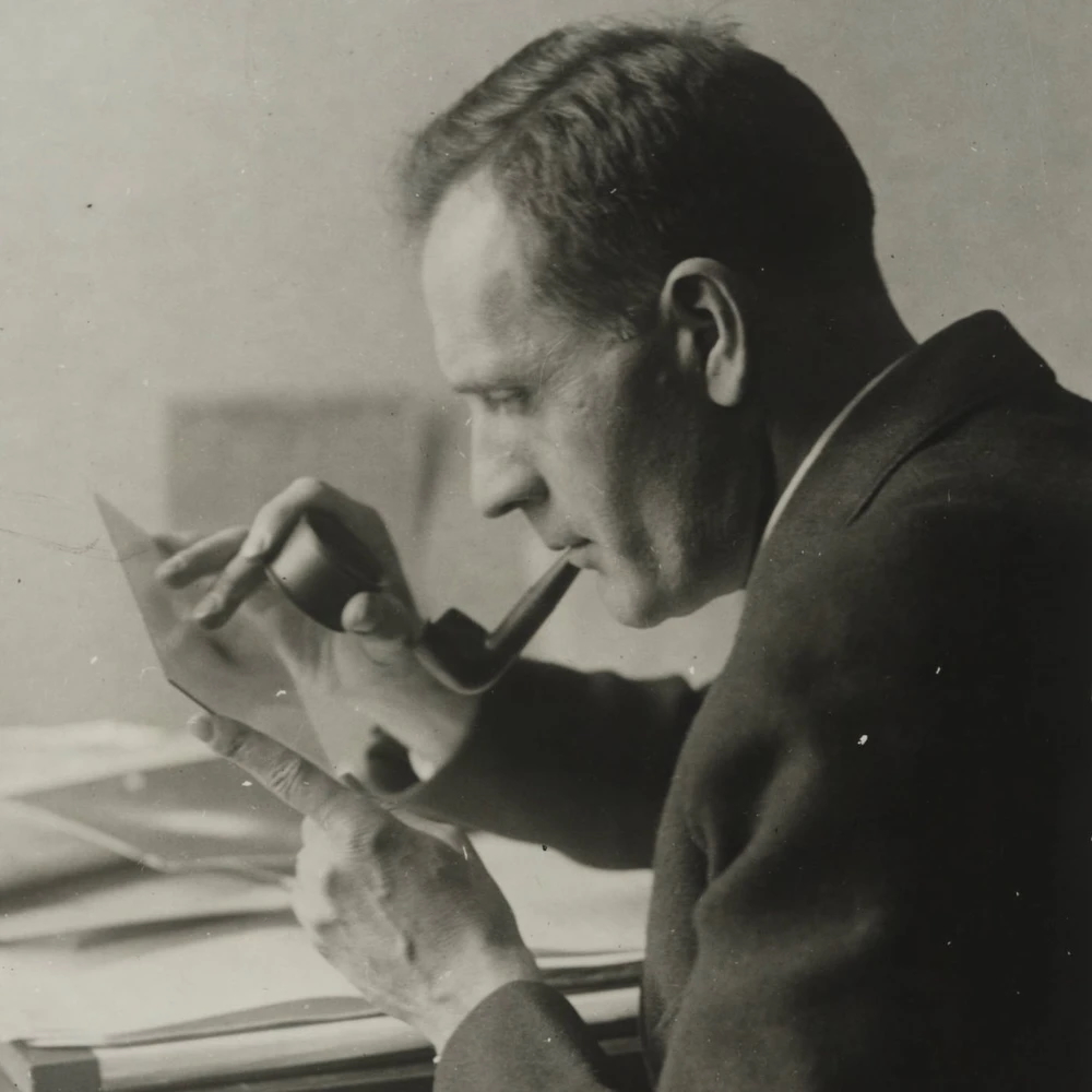 <b>7. Hubble ispeziona la lastra che mostra la sua variabile Cefeide in M 31.</b>