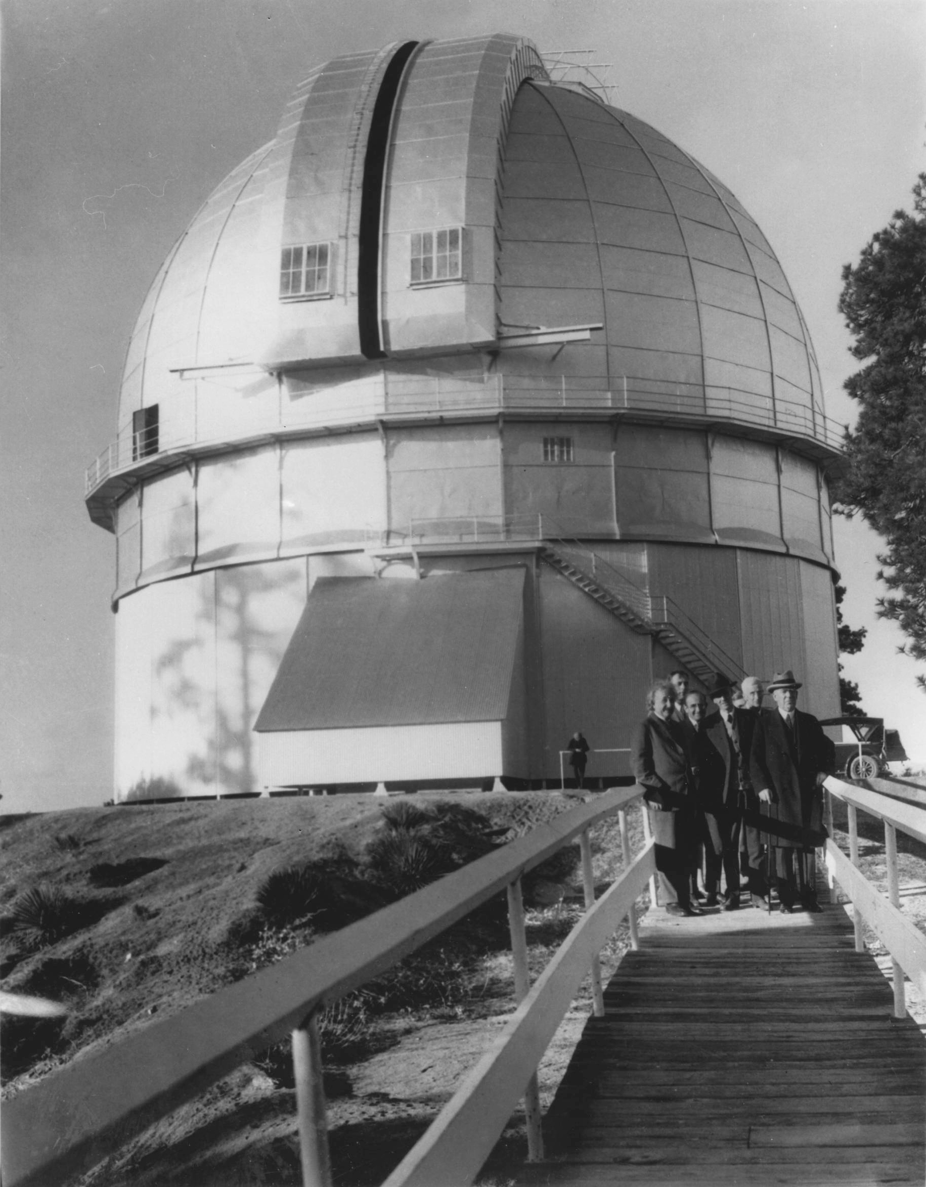 1. Da sinistra a destra: Albert Einstein, Edwin P. Hubble, Walther Mayer, Walter S. Adams, Arthur S. King e William W. Campbell dinanzi alla cupola del riflettore “Hooker” da 100 pollici, Mount Wilson Observatory, 29/1/1931.